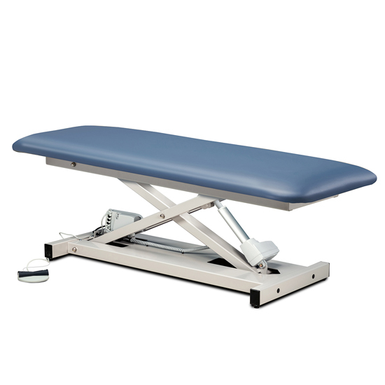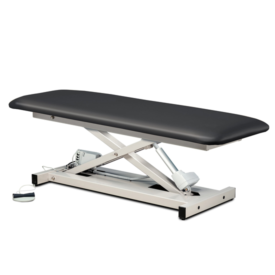• Features an easy-clean, one-piece top • Electric power height adjustment with foot control • Ultra-strong, uni-frame base and top construction • Heavy duty, all welded, lift mechanism • Durable gray powder-coated steel frame • Self-lubricating pivot points • Smooth 110 volt elecrtric height adjustment • Power supply and motor meets UL 60601-1 and CAN/CSA C22.2 601.1 • Hands-free low voltage foot control • Easy service, self contained, electrical components • Seamless, rounded corner, upholstered top • 2" ultra-firm padding • Low height may help acheive ADA tax credit • Customize with options • Made in the USA by Clinton Industries • 500 lbs. (227 kg) load capacity under normal use
