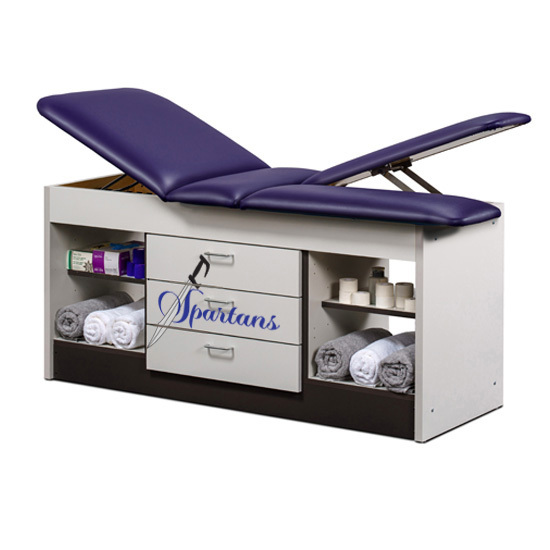 Sports Training Table with Adjustable Backrest, Center Drawers, Open Storage & Double Leg Lift