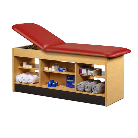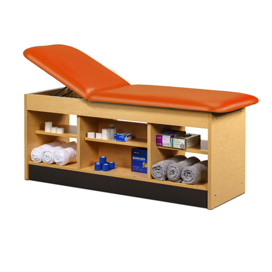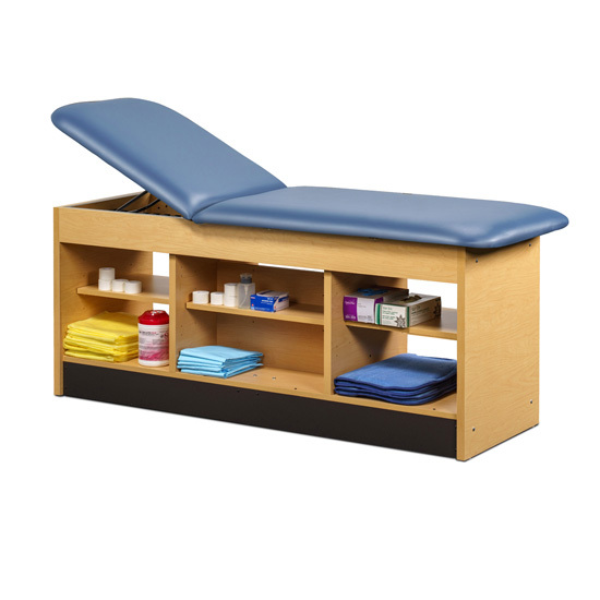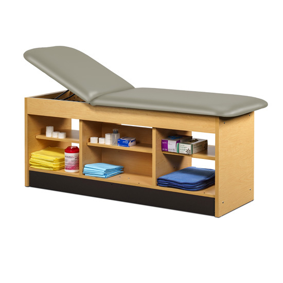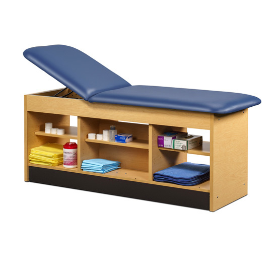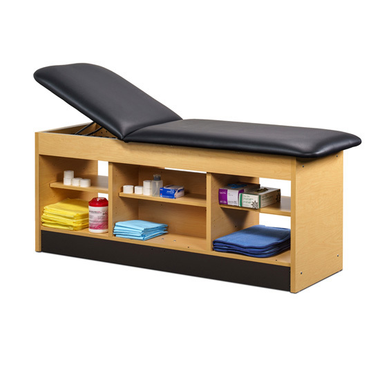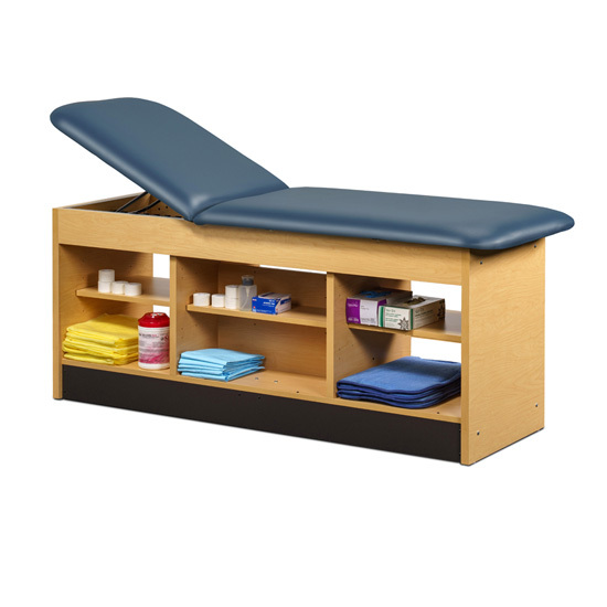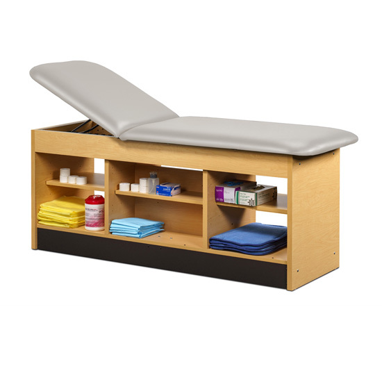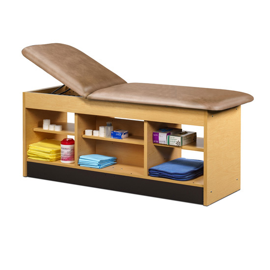 • All laminated construction • Choose standard adjustable backrest or flat top option • No additional charge for adjustable backrest • Backrest has 6 settings of approximately: 60º, 55º, 50º, 43º, 36º & 27º • Center section has an adjustable shelf on both sides with pass-through access • Open storage on each side of center section • Seamless rounded corner top • 2” firm foam padding • Heavyweight, knit-backed upholstery • Ships assembled • 425 lbs. load capacity under normal use (193 kg)